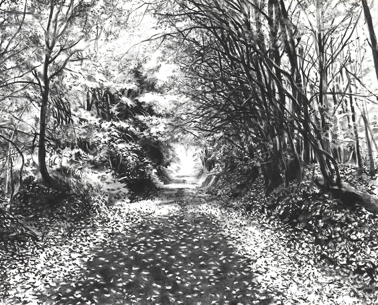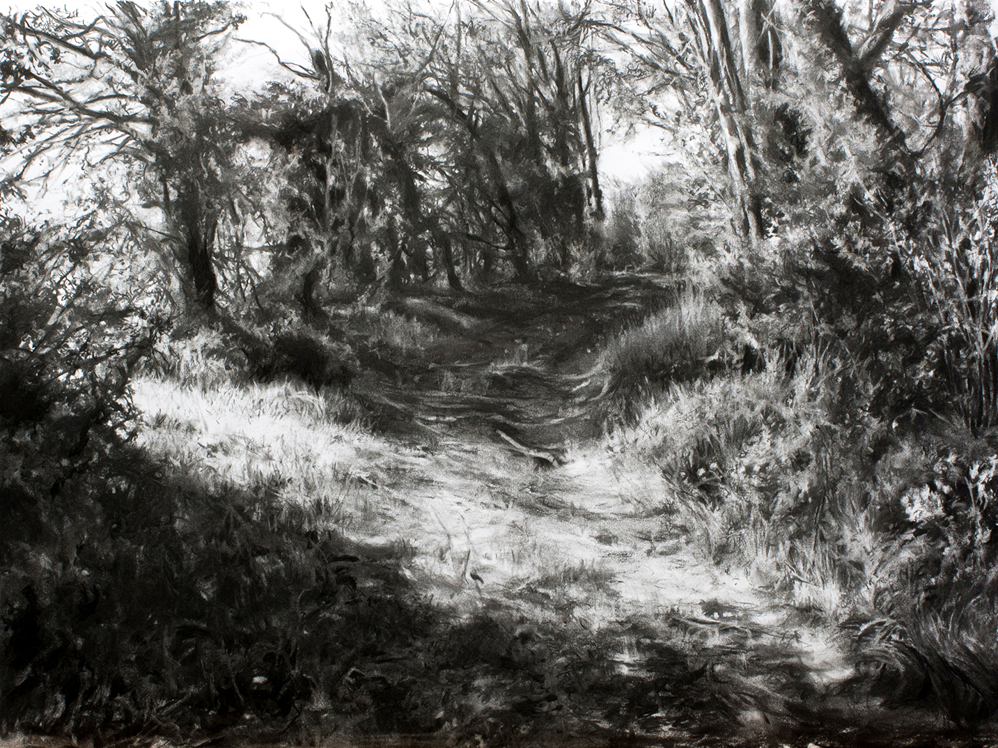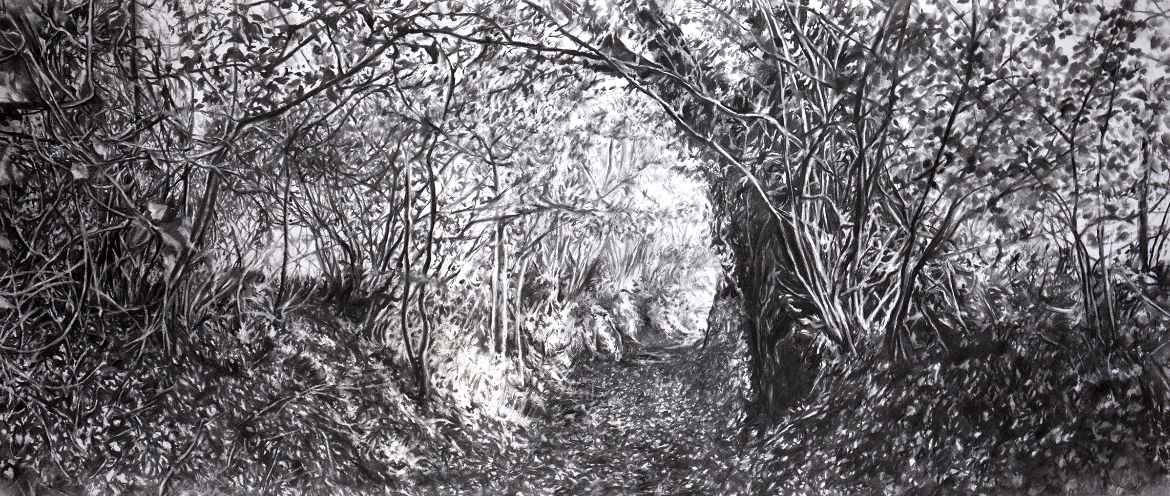 Chemin creux 2021 - fusain sur papier - 61 x 142 cm
