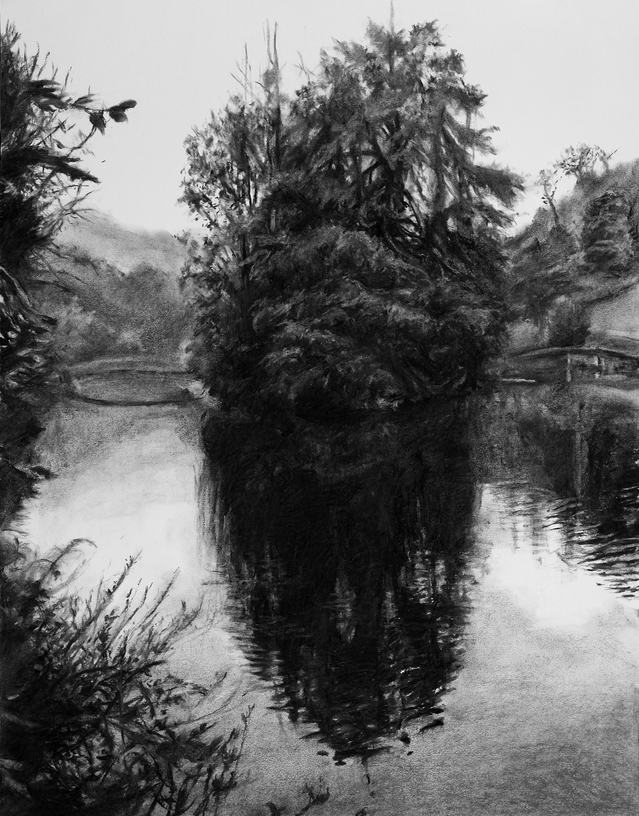Rivière 2017 - fusain sur papier - 65 x 50 cm