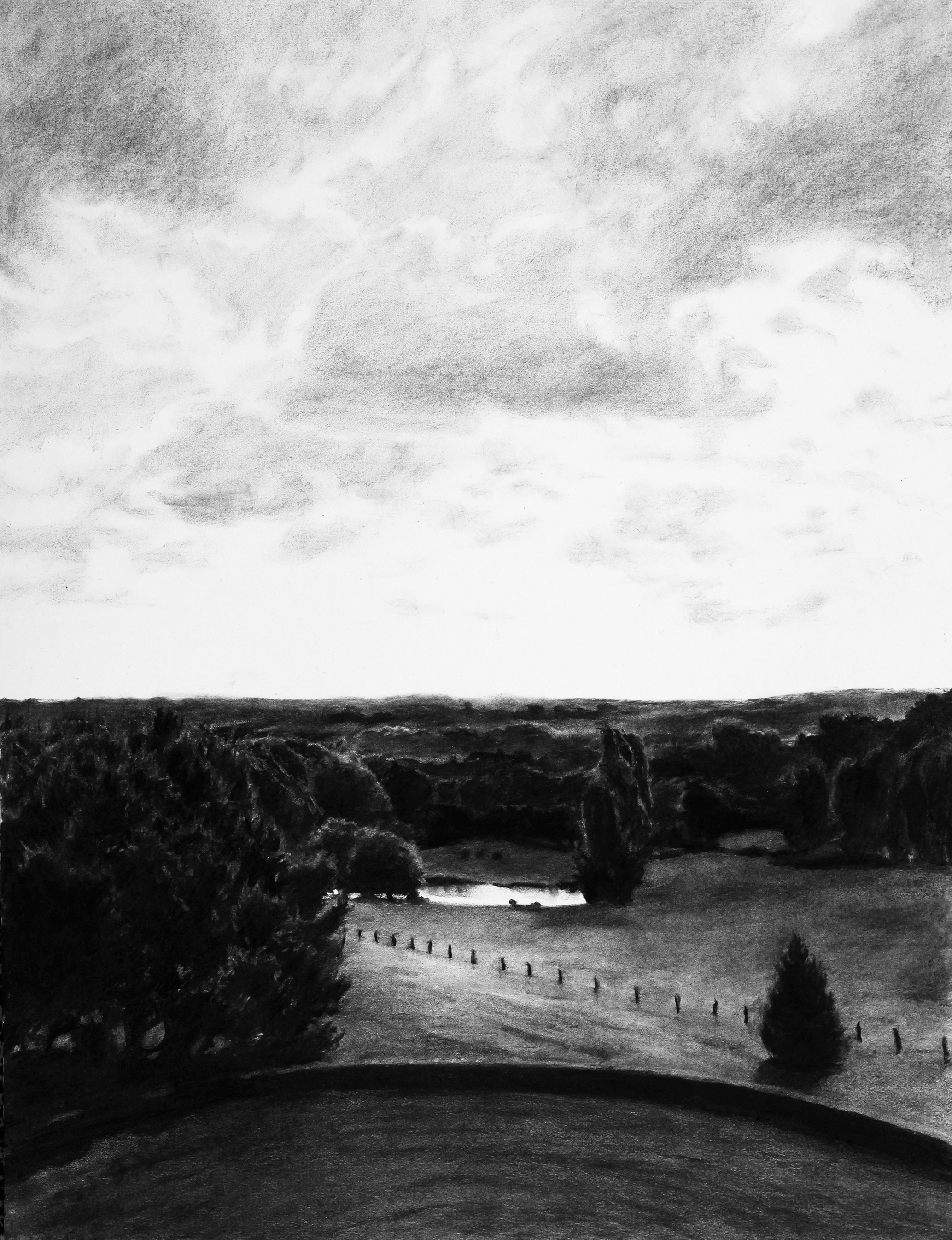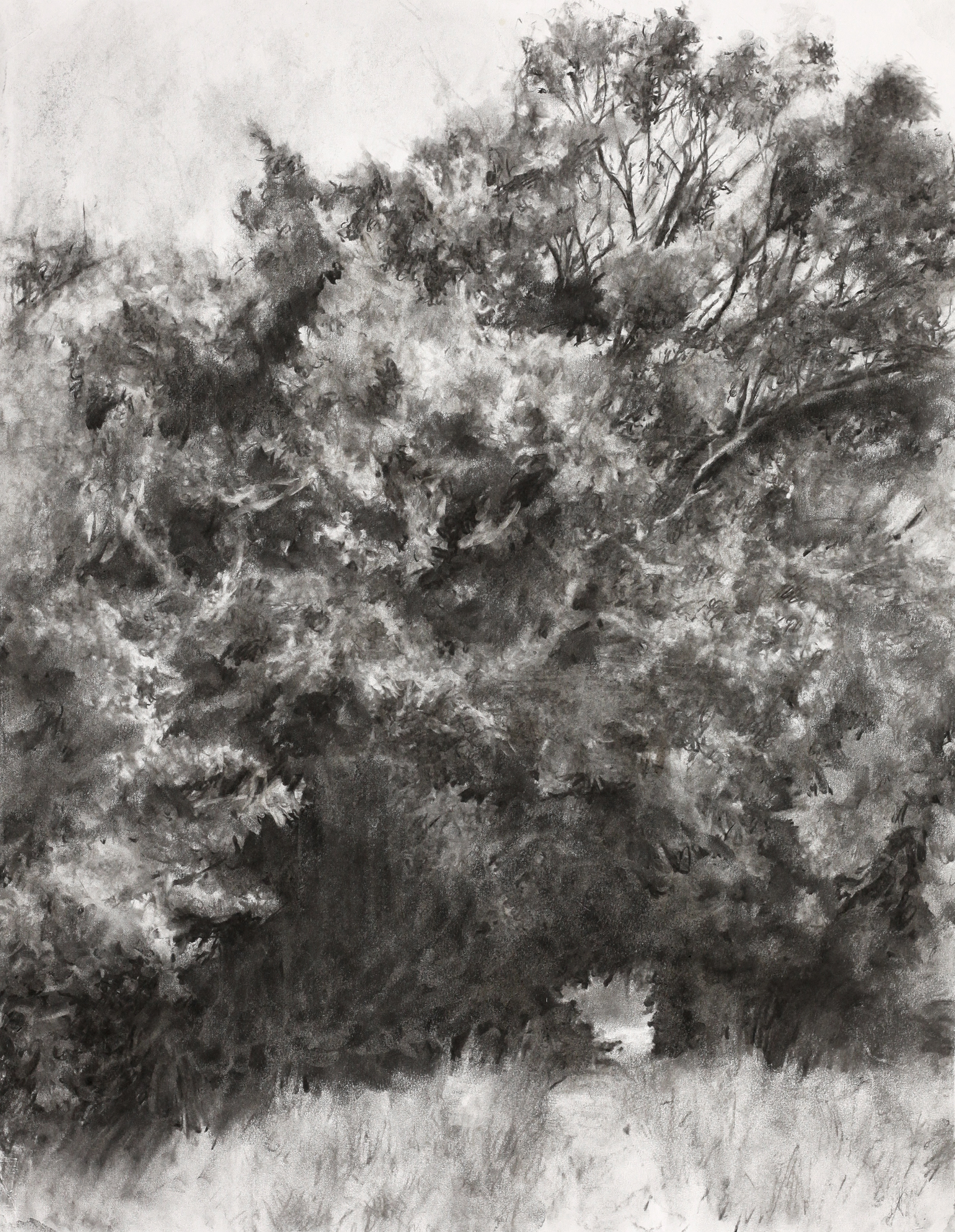 La grande haie 2017 - fusain sur papier - 65 x 50 cm