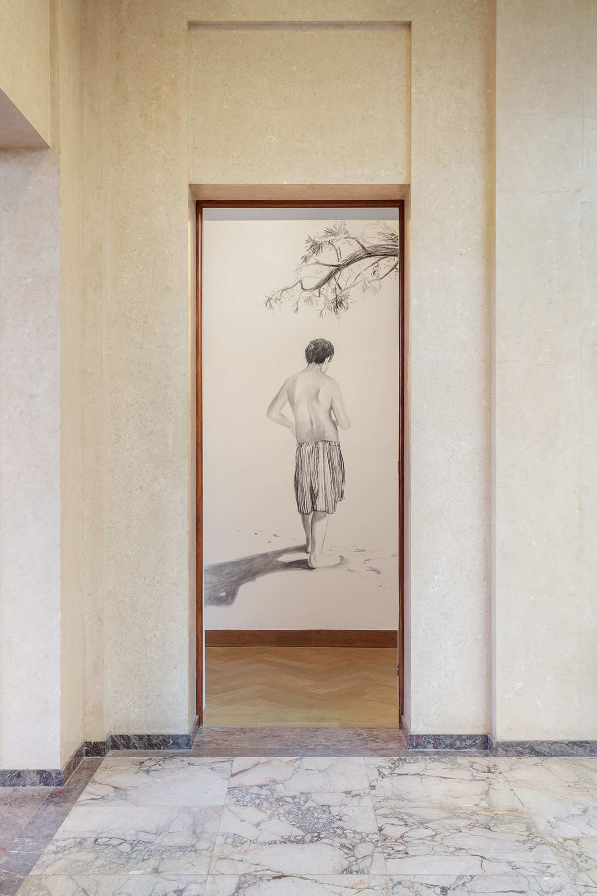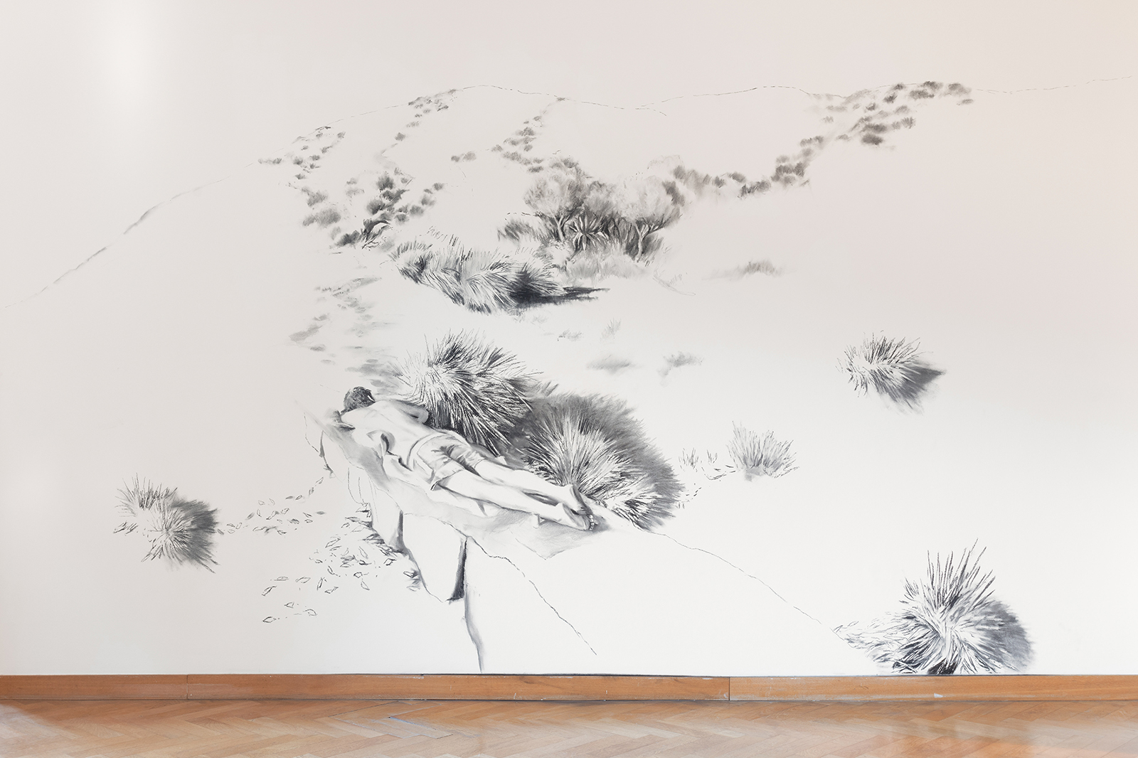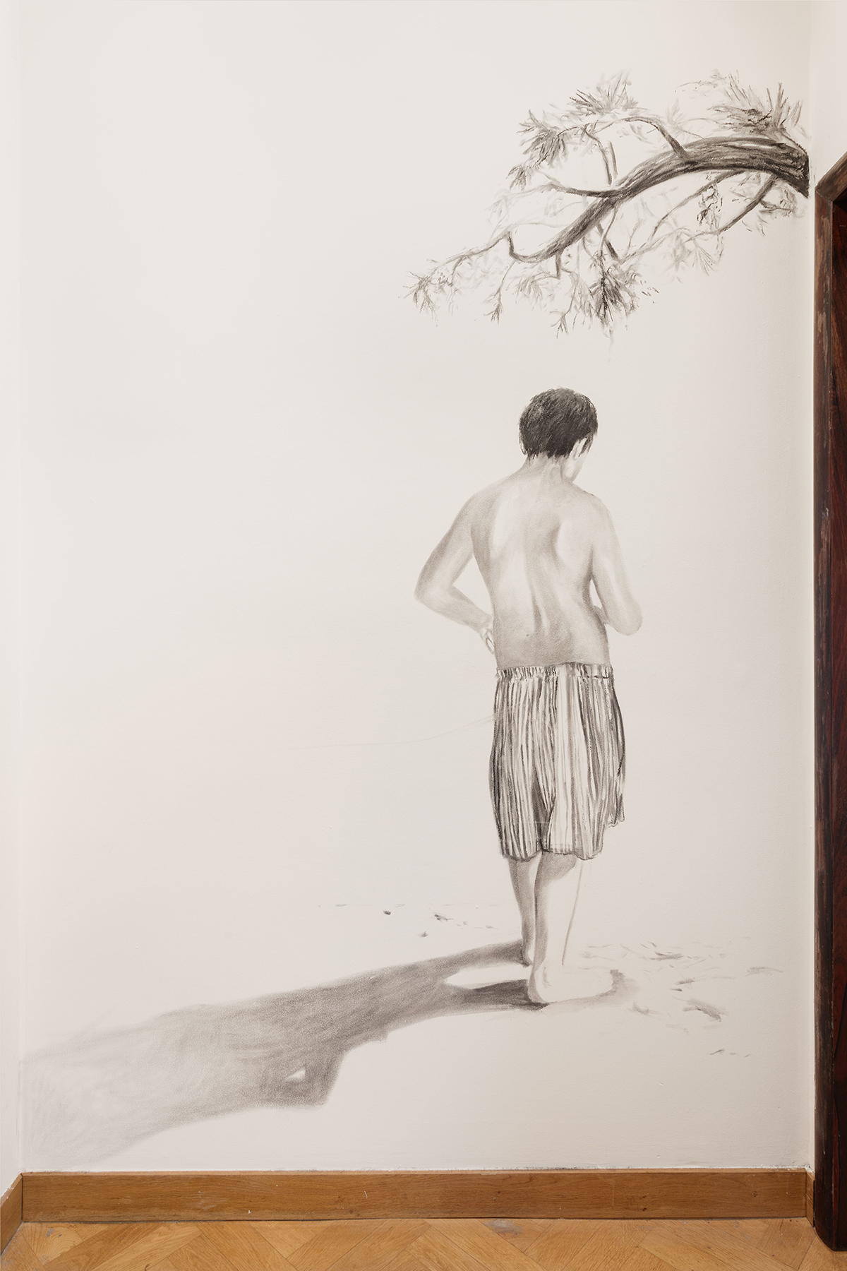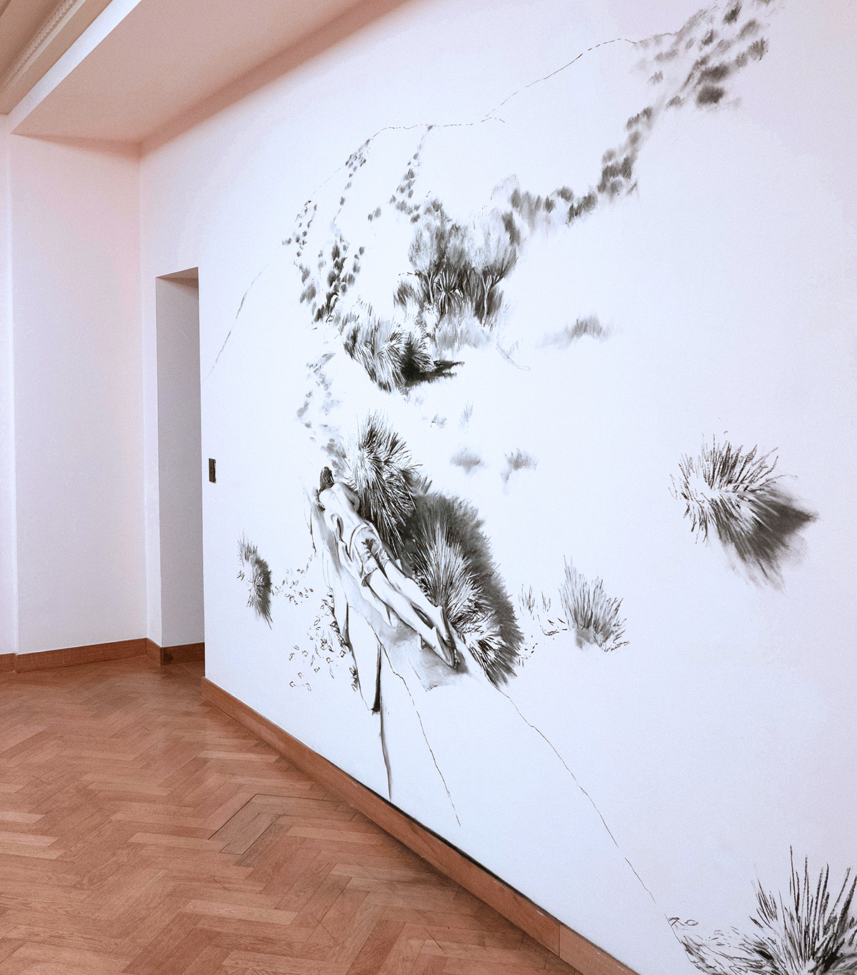 Dessins au fusain in situ, dans le cadre de l'exposition "Family Matters"