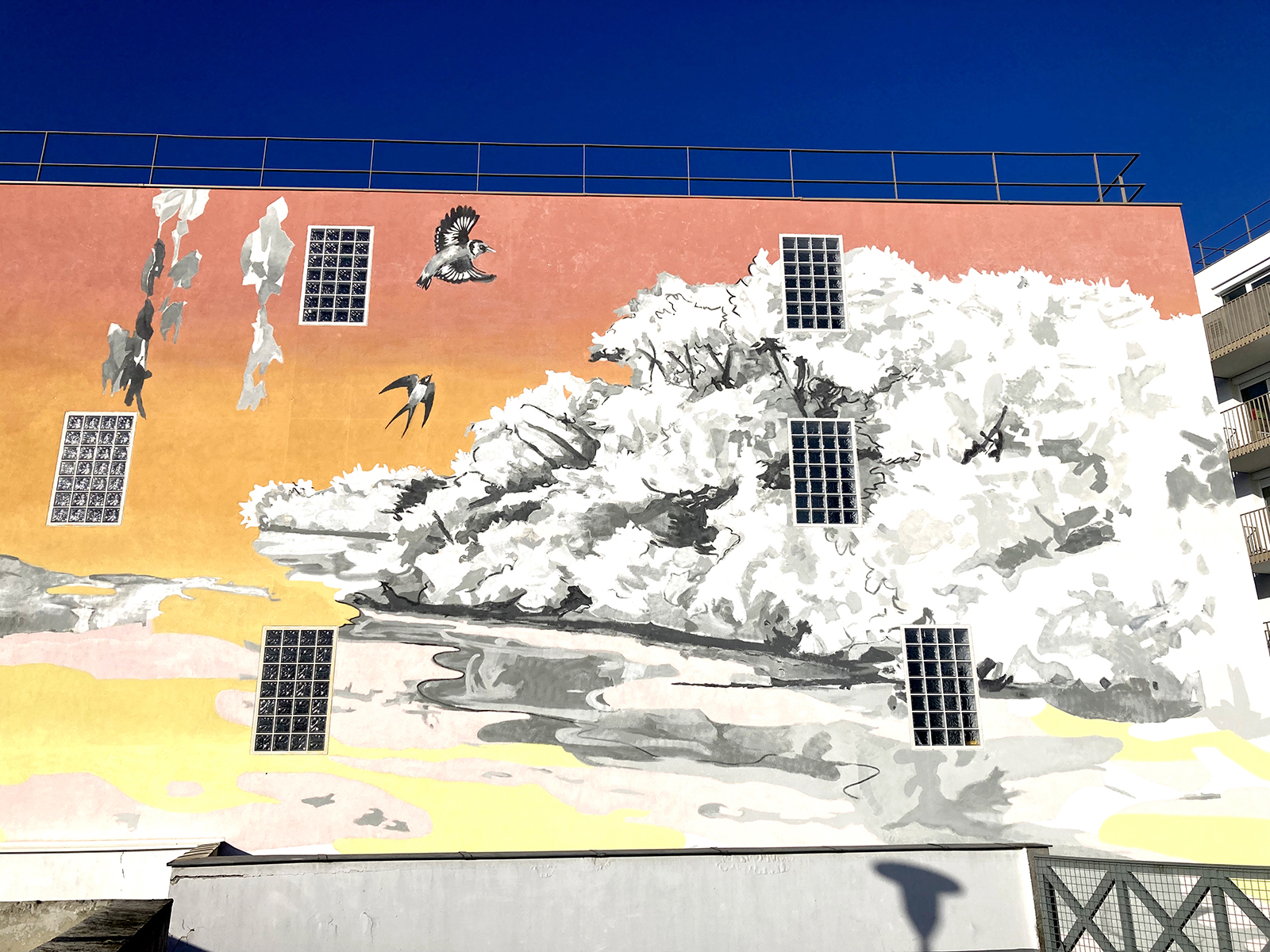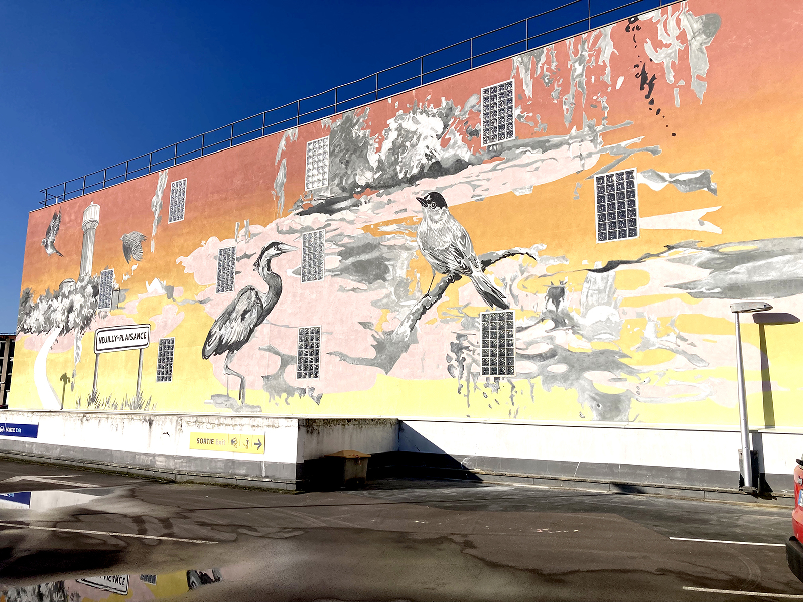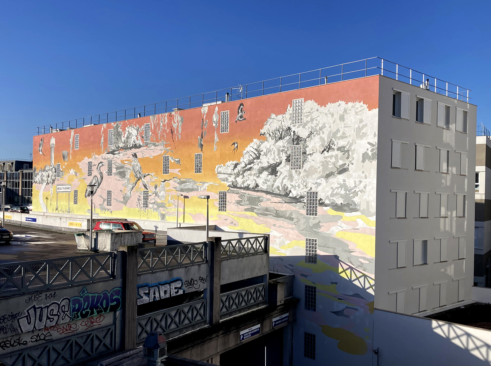 Conception et réalisation d'une peinture murale de 400 m2, en partenariat avec la galerie By Lara Sedbon et le groupe Sogeprom, et avec le soutien de la ville de Neuilly-Plaisance. Ce projet a été entièrement réalisé avec une peinture minérale biodégradable à 100%.